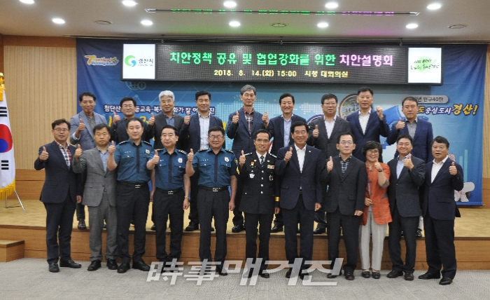 [시사매거진/대구,경북=구웅 기자] 경산경찰서(서장 최석환)는 14일 경산시청 회의실에서 경찰서장, 각 과장 및 경산시장, 국장, 과장 등 총 40여 명이 참석한 가운데 ‘치안정책 공유 및 협업 강화를 위한 치안간담회’를 개최했다.