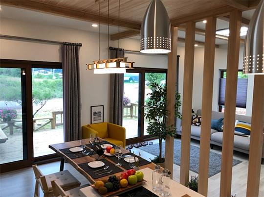 철보다 불에 강한 목재를 사용해 내구성을 높였으며 쿠라철물을 적용해 내화 및 내풍성을 강화했다. 삼림욕에서 얻을 수 있는 피톤치드와 음이온효과, 친환경 자재를 통해 아이들이 안심하고 거주할 수 있는 친환경 단독주택이다.