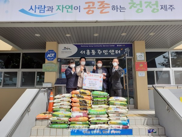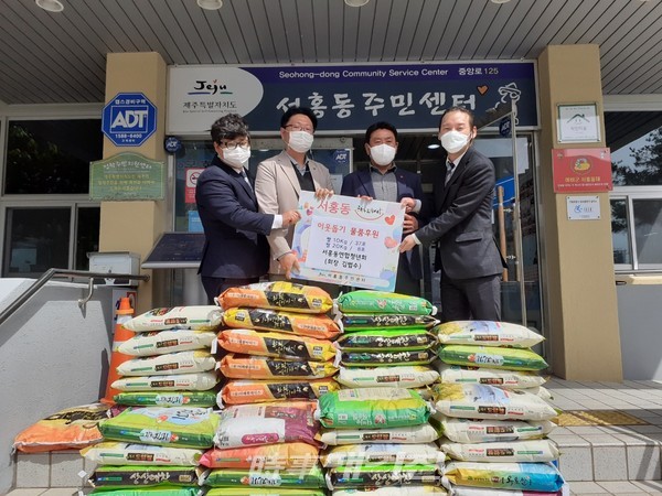 이 날 전달된 물품은 지난 3월 27일 개최된 2021년도 서홍동연합청년회 회장단 및 감사 이·취임식에서 받은 쌀 화환으로 서홍동 관내 취약계층을 돕는데 사용된다.